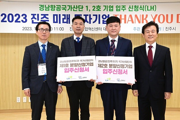 특히 이날 행사에서 경남항공국가산업단지(진주지구)에 준엔지니어링㈜, ㈜제이디 등 2개 기업이 약 1만 평 규모의 대규모 부지 분양 신청서를 한국토지주택공사 경남지역본부에 제출하는 입주 신청식도 가져, 향후 항공산단의 분양 활성화에 대한 기대감을 높였다.