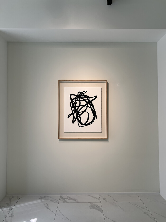 이배 작가의 작품은 흑백의 단순한 구성 안에서도 깊은 밀도와 에너지를 담고 있다. 자유롭게 얽힌 선은 무의식의 흐름을 따라가듯 캔버스를 가로지르며, 보는 이로 하여금 내면의 우주와 마주하게 한다. 절제된 색감 속에서 오히려 감정의 진폭은 극대화되며, 작가 특유의 ‘절제의 미학’이 정점을 이룬다.