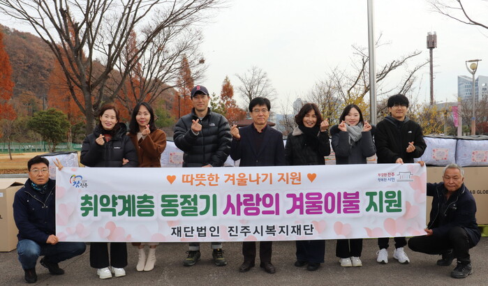 재단 관계자는 “지역 내 취약계층 저소득가구의 따뜻한 겨울나기에 조금이나마 도움을 드리고자 동절기 위문품을 마련했다”며 “앞으로도 진주시복지재단은 도움이 필요한 소외된 이웃을 돕기 위해 최선의 노력을 다할 계획”이라고 말했다.