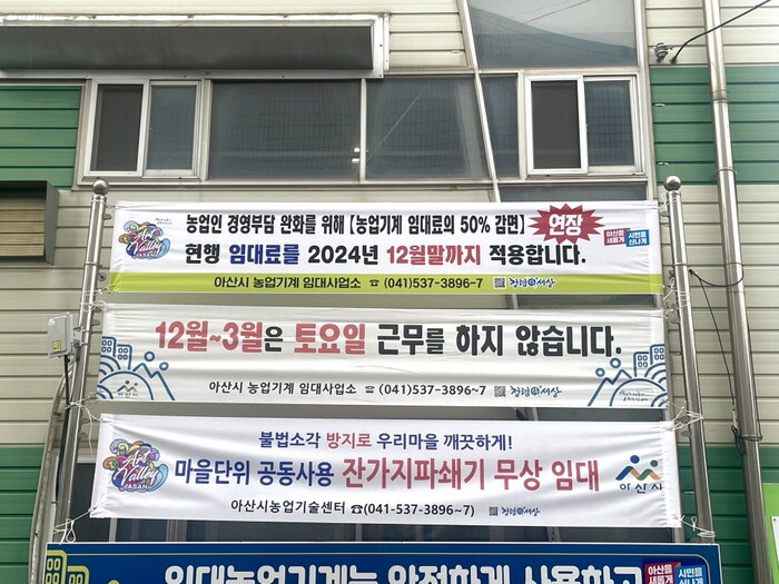 기타 농업기계 임대 사업과 관련된 사항은 아산시농업기술센터 농업기계 임대사업소로 문의하면 된다.