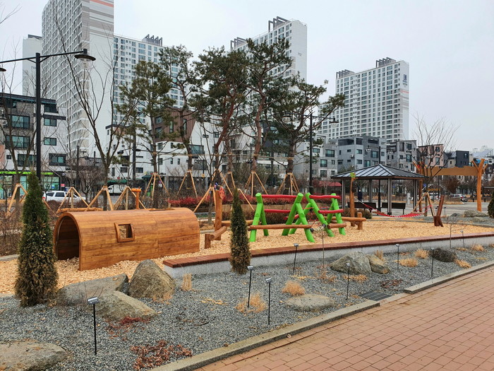 [고양=이기홍 기자] 고양시가 덕양구 도내동 일원 도래울마을 바람물공원에 조성한 어린이 숲놀이터가 2월 초 개장을 앞두고 있다.