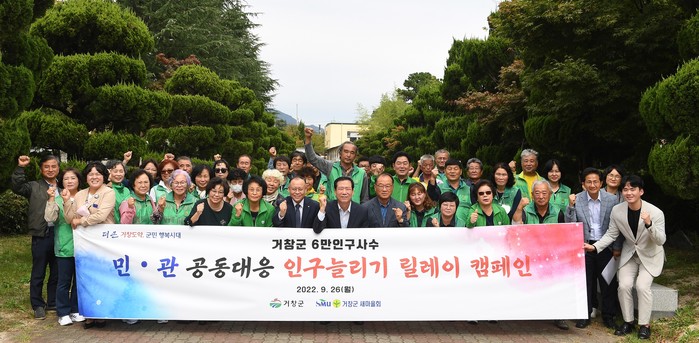 이런 가운데 군은 6만 인구 붕괴의 위험을 극복하기 위해 8월 31일부터 거창군이장자율협의회 등과 협약을 체결하는 등 관내 기관·단체와 인구늘리기 민·관 공동대응 릴레이 협약을 추진하고 있다.