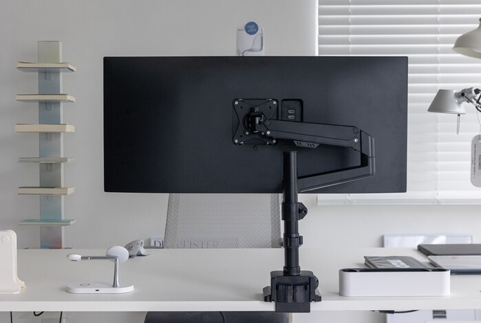 사이즈오브 모니터암은 고급스럽고 심플한 디자인과 무광 블랙 색상으로, 어떠한 인테리어에도 위화감 없이 잘 어우러진다.