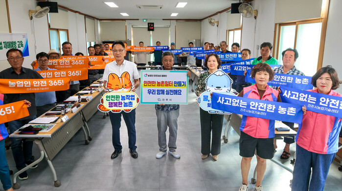 시는 10일 명석면, 수곡면 이장 50명, 11일 문산읍, 금산면 이장 69명을 대상으로 여름철 폭염 대비 건강·안전 수칙 등에 대해 교육을 진행한 후 농업인 안전365 캠페인을 통해 안전하고 건강한 농작업 실천 의지를 다졌다.