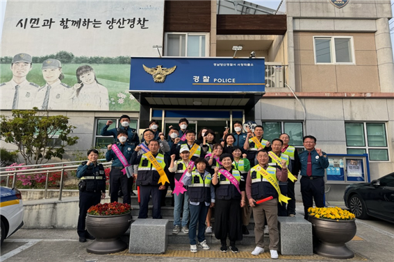 [양산=최성일 기자] 양산경찰서(서장 김대정)는지난 19일(화). 18:00∼19:00경, 지역 플랫폼 치안을 강화하고 시민의 안전한 일상 지키기 위해, 서창동 일원에서 민·관 등 지역사회가 다 함께 참여하는 민관합동 범죄예방 캠페인을 실시했다.