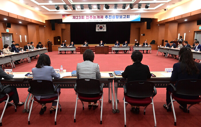 진주시는 23일 시청 시민홀에서 조규일 진주시장과 유관기관 및 단체, 관계공무원 등 40여 명이 참석한 가운데 ‘제23회 진주논개제 추진상황 보고회’를 갖고 안전하고 성공적인 축제 개최를 위한 준비 상황을 종합적으로 점검했다.