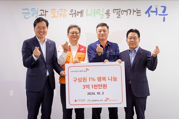 SK인천석유화학은 10월 2일 인천 서구청에서 열린 구성원 1% 행복나눔 기금 전달식에서 인천사회복지공동모금회를 통해 기금 3억1000만원을 기부했다.