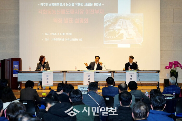 광주광역시(시장 강기정)는 최근 각화동농산물도매시장의 이전 부지를 확정하고, 2일 북구 각화동 시화문화마을 커뮤니티센터에서 주민설명회를 개최했다.