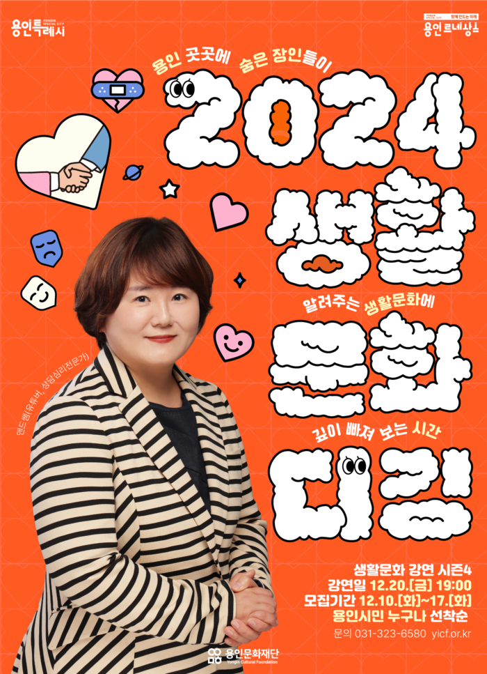 [용인=오왕석 기자] 용인문화재단(이사장 이상일)은 오는 20일 보정역 생활문화센터에서 ‘2024 생활문화 디깅’ 생활문화 강연을 진행한다.