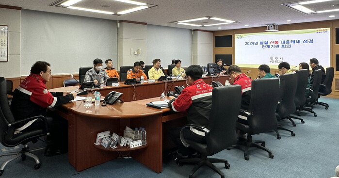 진주시는 4일 시청 재난안전상황실에서 차석호 진주시 부시장 주재로 진주경찰서, 진주소방서 관계자 등이 참석한 가운데 봄철 산불 대응태세 점검회의를 개최했다.