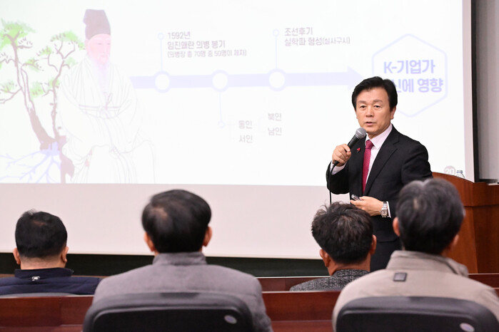 이날 특강에는 장형유 경상국립대학교 경영대학원장, 백홍규 최고경영자과정 연구장학재단 이사장, 정대율 경상국립대학교 교수, 39기 수강생 등 40여 명이 참여했다.