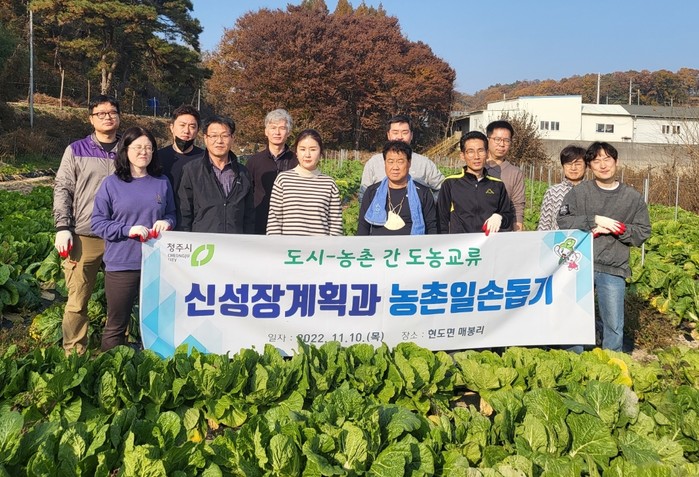 이날 최주원 과장을 비롯한 신성장계획과 직원 12명은 김장철을 맞아 배추, 무 수확 작업 등을 함께하며 일손이 부족한 농가의 시름을 덜어주는 보람된 시간을 가졌다.