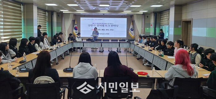 제7기 전남학생의회 2권역 학생 대표가 회의를 진행하고 학생들이 제안한 전남교육에 관한 정책에 대해 활발한 의견을 나눴다.