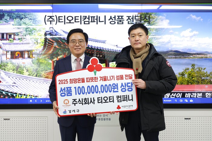 [시민일보 = 박소진 기자] 서울 강서구(구청장 진교훈)가 ㈜티오티컴퍼니로부터 1억원 상당의 이웃돕기 성품을 전달받았다고 24일 밝혔다.