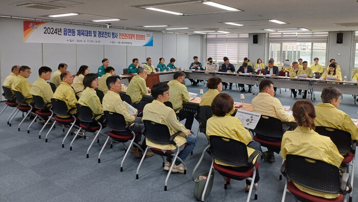 진주시는 17일 시청 3층 문화강좌실에서 오는 20일부터 시작되는 읍면동 체육대회 및 경로잔치 행사를 대비하여 ‘2024년 읍면동 체육대회 및 경로잔치 행사 안전관리대책 점검회의’를 개최했다.