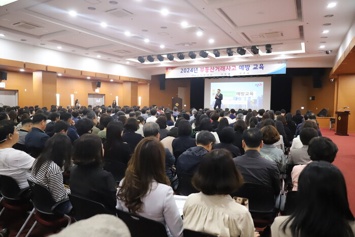 이번 교육은 관내 부동산중개업 종사자 300여 명을 대상으로 최근 대규모 전세사기 피해가 계속 발생하는 등 사회적 문제가 되고 있는 부동산 거래사고 예방과 공인중개사의 책임의식과 중개서비스의 질을 높이며 공정하고 투명한 부동산거래 시장 정착을 위해 마련됐다.