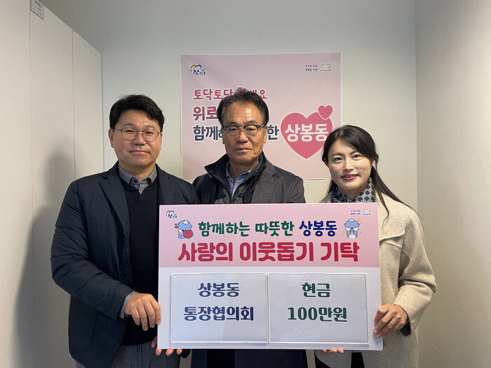최은영 상봉동장은 “어려운 이웃들을 위해 따뜻한 나눔을 실천해주신 상봉동 통장협의회에 감사드린다”며 “기탁금은 도움이 필요한 이웃들에게 소중히 전달하여 추운 겨울철에 보탬이 되도록 하겠다”고 말했다.