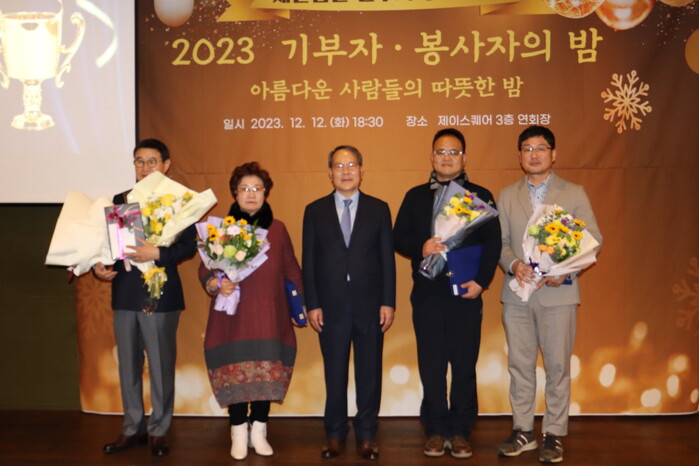행사에는 참여하지 못했지만 진주에 마음을 보내온 고액기부자 명단에는 ㈜신성델타테크 구자천 회장, NH농협중앙회 강태영 부행장과 김주양 경남본부장, 서울시립대학교 임정하 교수도 있다.