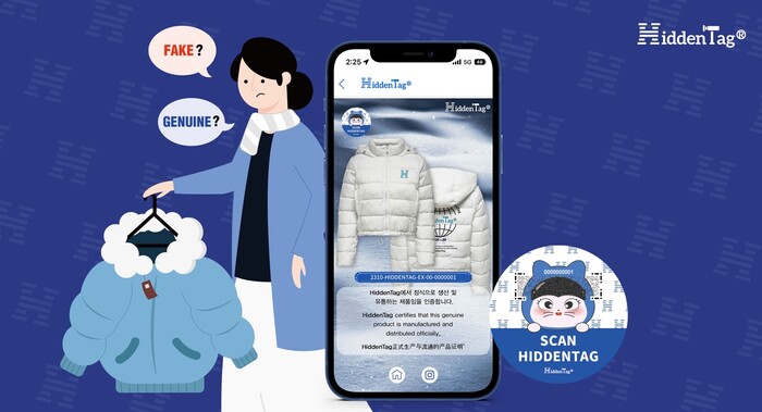 히든태그는 위변조가 불가한 방식의 라벨 타입으로 소비자가 전용 앱을 통해 라벨을 스캔하면 실시간으로 서버에 있는 정보와 매칭하여 정가품 여부를 알려준다. 뿐만 아니라 서버를 통한 이중보안을 통해 가품 발생을 원천 차단하는 효과도 크다.