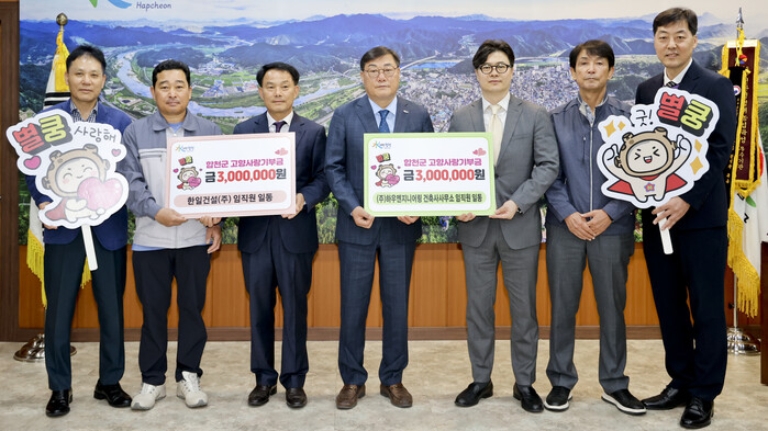 한일건설(주)과 ㈜하우엔지니어링건축사사무소는 합천군 과학영농종합시설 조성공사에 참여하고 있는데 합천과 맺은 인연으로 임직원들이 군 발전을 위해 고향사랑기부에 동참하며 훈훈함을 전했다.
