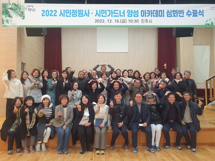 [진주=최성일 기자] 진주시는 16일 월아산 숲속의 진주 달음호 에서 정원 문화 확산 및 시민과 함께 만들어가는 정원 조성과 관련된 ‘제1회 진주시 시민 정원사와 시민 가드너 양성 교육 심화 과정 수료식’을 개최했다.