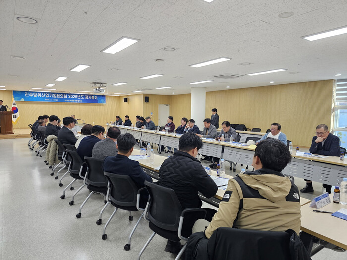 진주시와 진주방위산업기업협의회(회장 홍수훈)는 14일 진주경남혁신도시 복합혁신센터에서 방산 관련 중소기업, 방위사업청, 경남테크노파크 등 관계자 40여 명이 참석한 가운데 ‘2025년 진주 방위산업기업협의회 정기총회 및 방산기업 지원사업 설명회’를 개최했다.