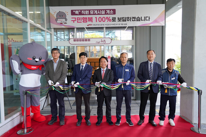 12일 구에 따르면 휴게시설은 94㎡ 면적으로 기존 유휴 실외 공간을 실내로 리모델링해 조성했으며 무인 라면자판기와 로봇 커피머신, 간단한 취식 공간을 갖추고 있다.