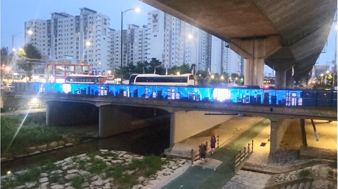 [시민일보 = 이대우 기자] 서울 동대문구(구청장 이필형)가 정릉천을 가로지르는 용두교에 미디어글라스를 설치하여 지나가는 주민들의 눈길을 사로잡았다.