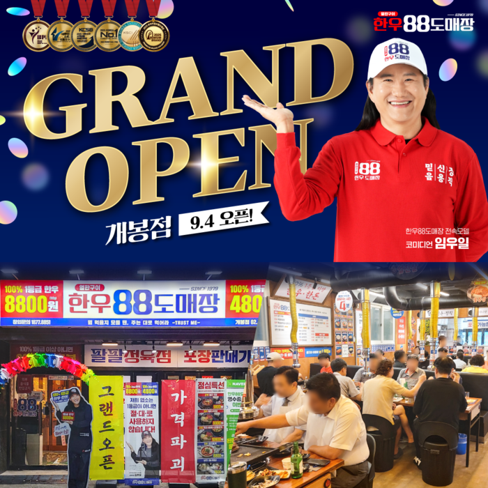 관계자는 “개봉점은 레트로한 인테리어와 합리적인 가격의 한우, 한돈과 다양한 사이드 메뉴까지 더해져 회식, 외식 등 모임 하기 좋은 식당으로 자리 잡을 것을 기대하고 있다”라며 “한우88도매장은 가격은 저렴하지만 어디서든 맛볼 수 없는 최상의 퀄리티로 제공하여 차별화된 경쟁력을 맞췄다”라고 말했다.