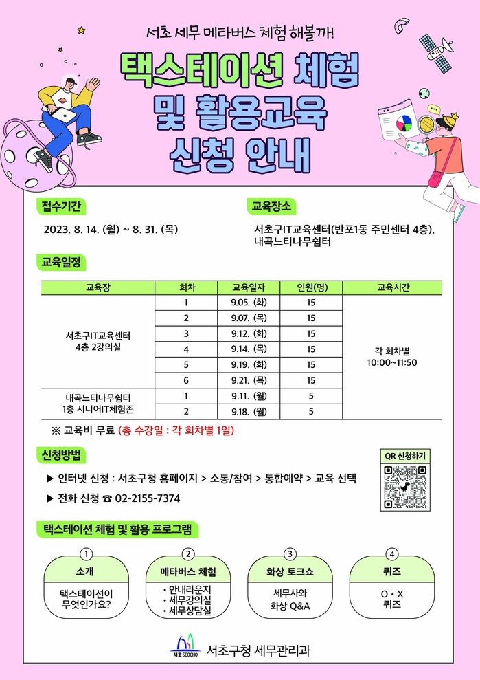 | ▲ 택스테이션 체험 및 활용교육 신청 안내 포스터 (사진=서초구청 제공) |
