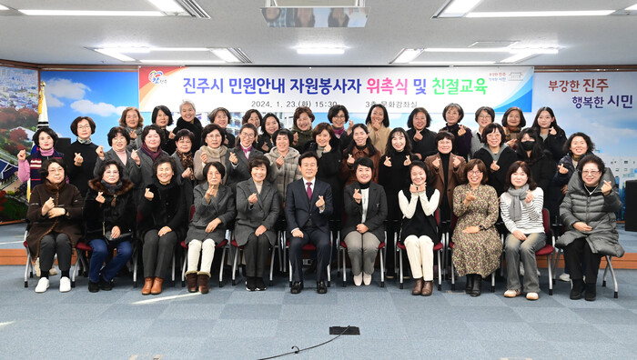 진주시는 23일 진주시 민원안내 자원봉사자 52명이 참석한 가운데 위촉식을 개최하고 친절교육도 함께 실시했다.