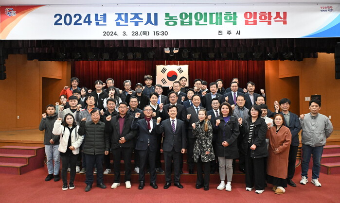 진주시는 28일 시청 시민홀에서 입학생 132명과 내빈이 참석한 가운데 농업발전을 선도하는 지역인재 양성을 위한 ‘농업인대학 입학식’을 개최했다.