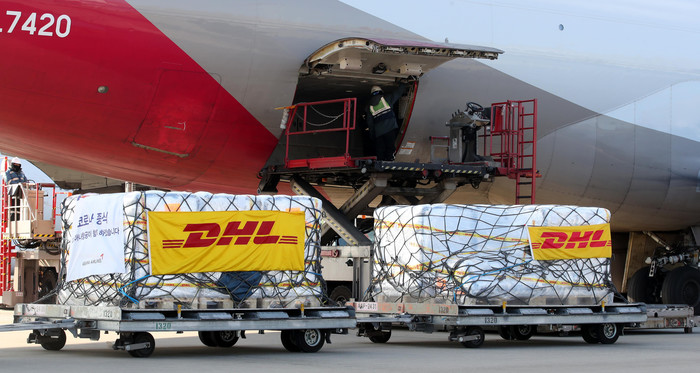 13일 오후 영종도 인천국제공항 화물터미널에서 관계자들이 이날 처음 국내로 들어온 미국 제약사 화이자사(社)의 코로나19 경구용(먹는) 치료제 '팍스로비드' 2만1000명분을 옮기고 있다.