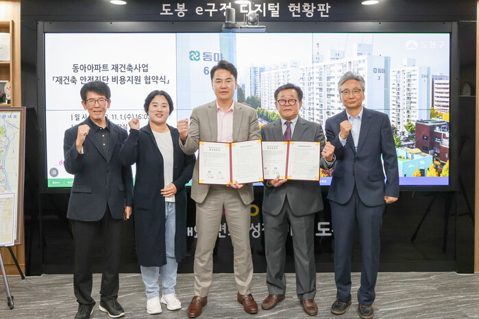 [시민일보 = 여영준 기자] 서울 도봉구(구청장 오언석)는 재건축 활성화를 위해 안전진단 비용 지원을 나선 가운데 최근 창동동아아파트와 지역내 처음으로 안전진단 비용 지원 협약을 체결했다고 3일 밝혔다.