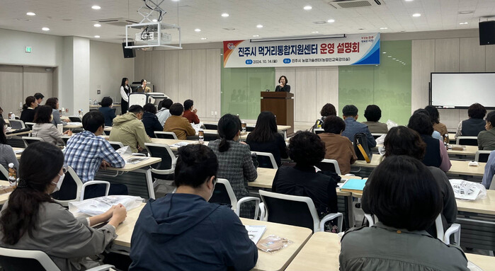 진주시는 14일 농업기술센터에서 진주교육지원청, 관내 학교장, 행정실장, 영양교사 140명을 대상으로 진주시 먹거리통합지원센터 운영 설명회를 가졌다.