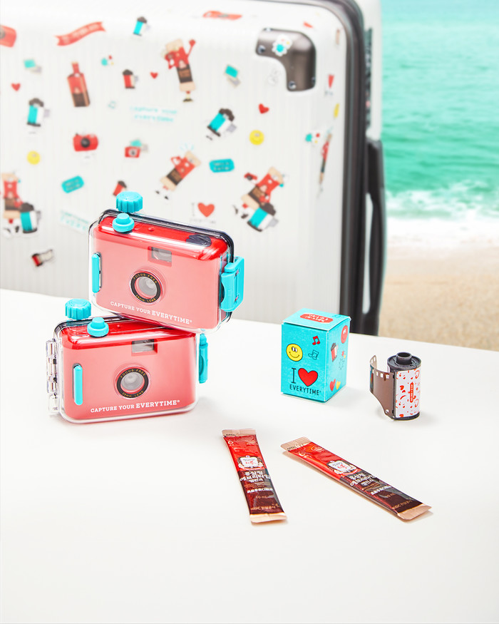 굿즈로 제공되는 '에브리타임 필름카메라'는 필름만 교체하면 계속 사용할 수 있는 다회용 카메라로, 소중한 순간을 아날로그 감성으로 담아낼 수 있도록 했다. 필름 8매와 더불어 카메라에 붙여 꾸밀 수 있는 캐릭터 스티커도 함께 제공된다.