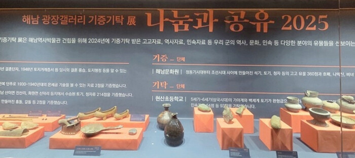 이번 전시회에서는 2024년 기증자인 김남주, 박월선, 윤영식, 변남주, 해남문화원과 현산초등학교에서 기탁받은 유물 중 58점을 선정해 전시한다.