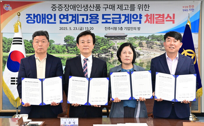 조규일 진주시장은 “이번 연계고용 계약 체결을 통해 장애인 고용이라는 사회적 가치가 우리 사회 전반에 공유되기를 바란다”며“우리 시는 앞으로도 장애인에 대한 다양한 지원 체계 마련과 민·관 협력에 최선을 다하겠다”고 말했다.
