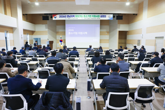 진주시는 11일 진주창업지원센터 컨벤션홀에서 경남지방중소벤처기업청, 경상남도, 중소벤처기업진흥공단과 공동으로 ‘2026년 경남지역 찾아가는 중소기업 지원사업 설명회’를 개최했다.