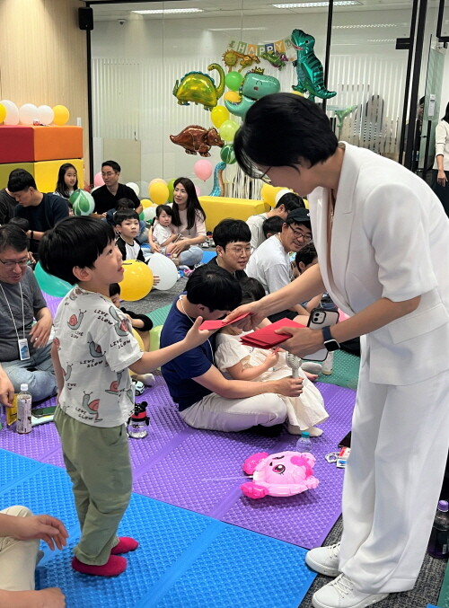 이 날 진행된 프로그램 중 ‘내 생애 첫 출근’에 직원들의 호응이 가장 높았다. 6~10세의 임직원 자녀 또는 조카들을 초청해 일일 직장체험을 시켜주는 것으로, 사전 신청을 통해 총 61명이 참석했다.