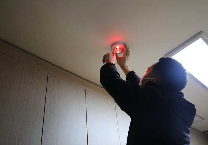 | ▲ 양산소방서, 청각장애인용 시각화재경보기 설치 사진 |