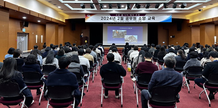 진주시는 28일 시청 2층 시민홀에서 공무원 200여 명이 참석한 가운데 오준 전 유엔대사를 초청해 소양교육을 실시했다.