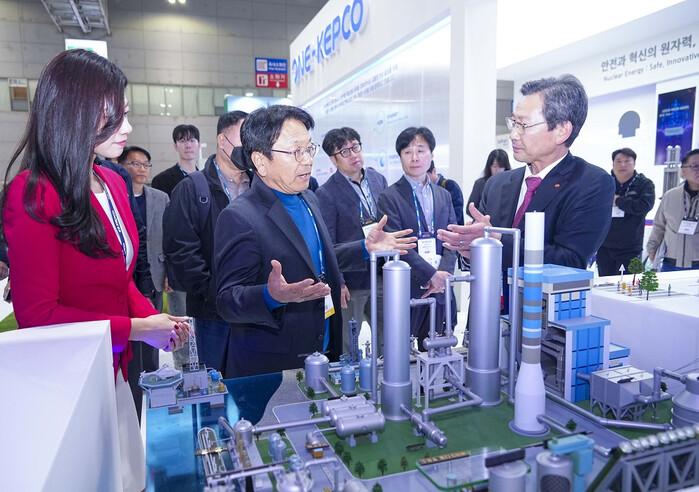 [광주=정찬남 기자] 강기정 광주광역시장이 7일 오후 서구 김대중컨벤션센터에서 진행된 ‘빛가람 국제전력기술 엑스포 2024(BIXPO 2024)’ 전시부스를 둘러보고 있다./광주광역시 제공
