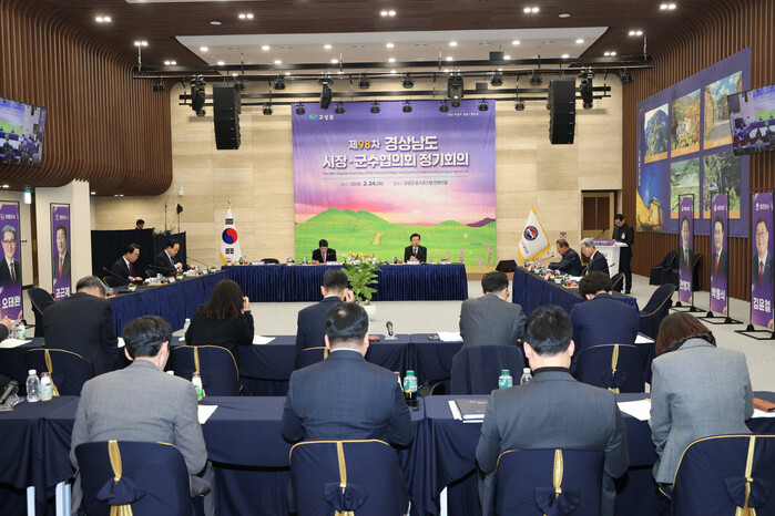 경상남도 시장·군수협의회(회장 조규일 진주시장)는 24일 고성군 유스호스텔에서 ‘제98차 경남 시장·군수협의회 정기회의’를 개최했다.