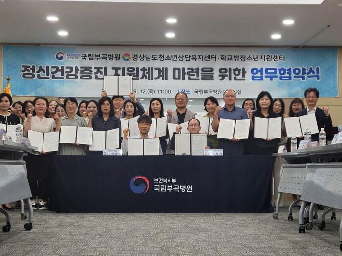 진주시 학교밖청소년지원센터와 청소년상담복지센터는 12일 국립부곡병원(원장 이태경)과 ‘청소년 중독예방, 치유 및 정신건강 증진 지원체계 마련을 위한 업무협약’을 체결했다고 밝혔다.