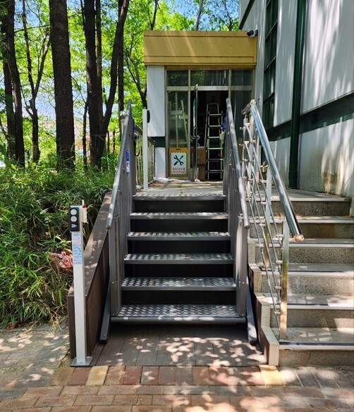 | ▲ 휠체어리프트 설치 (사진=강남구도시관리공단 제공) |
