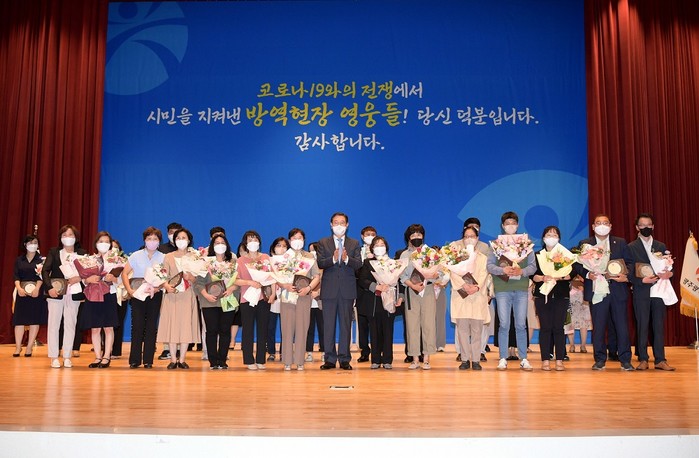 이번 수여식은 지난 2년 여간 이어진 코로나19와의 싸움에서 오롯이 시민의 건강과 안전을 지켜야 한다는 신념으로 최일선 현장에서 불철주야 헌신한 의료진 등 공로자를 포상하기 위해 마련됐다.