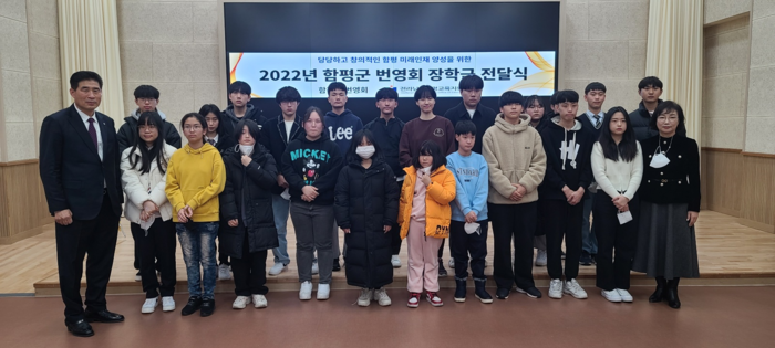 | ▲ 지난 29일, 함평교육지원청 대회의실에서 학생, 학부모, 교사 및 읍면 번영회장 등 100여명이 참석한 가운데 함평의 미래인재 양성을 위한 2022년 함평군 번영회 장학금 전달식을 가졌다.(출처=함평교육지원청) |