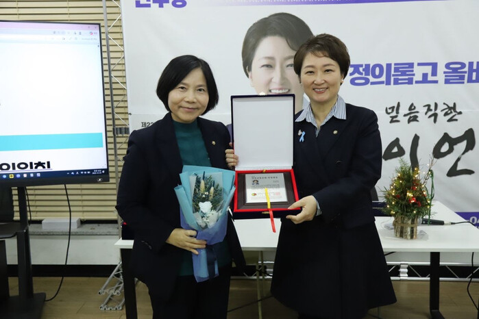 | ▲ [사진] 2025 선진교통문화 의정대상을 수상한 용인특례시의회 신현녀 의원(좌)과 이언주 국회의원(우) |