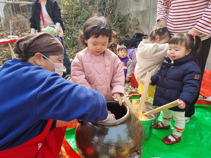 이날 어린이들은 메주에 소금물을 부으며 무사히 장 담그기 체험을 마쳤다.